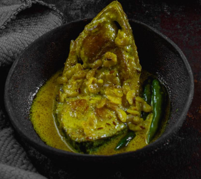 Ilish Chirer Jhol. Pristine Ilish. Stewed in coconut milk. The perfume of chire. The earthy fragrance of cumin paste. The rage of chillies. A perfect symphony. Enjoy !!!