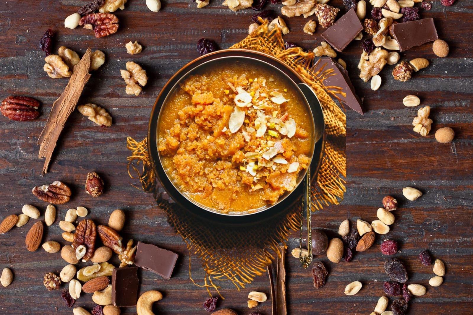 Kesar Sooji Halwa (Caramel Semolina Pudding) Half Tray