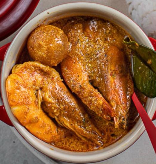 Lebu Patay Chingri Stew (Shrimp Stew with Gondhoraj Lebu Leaves) Half Tray