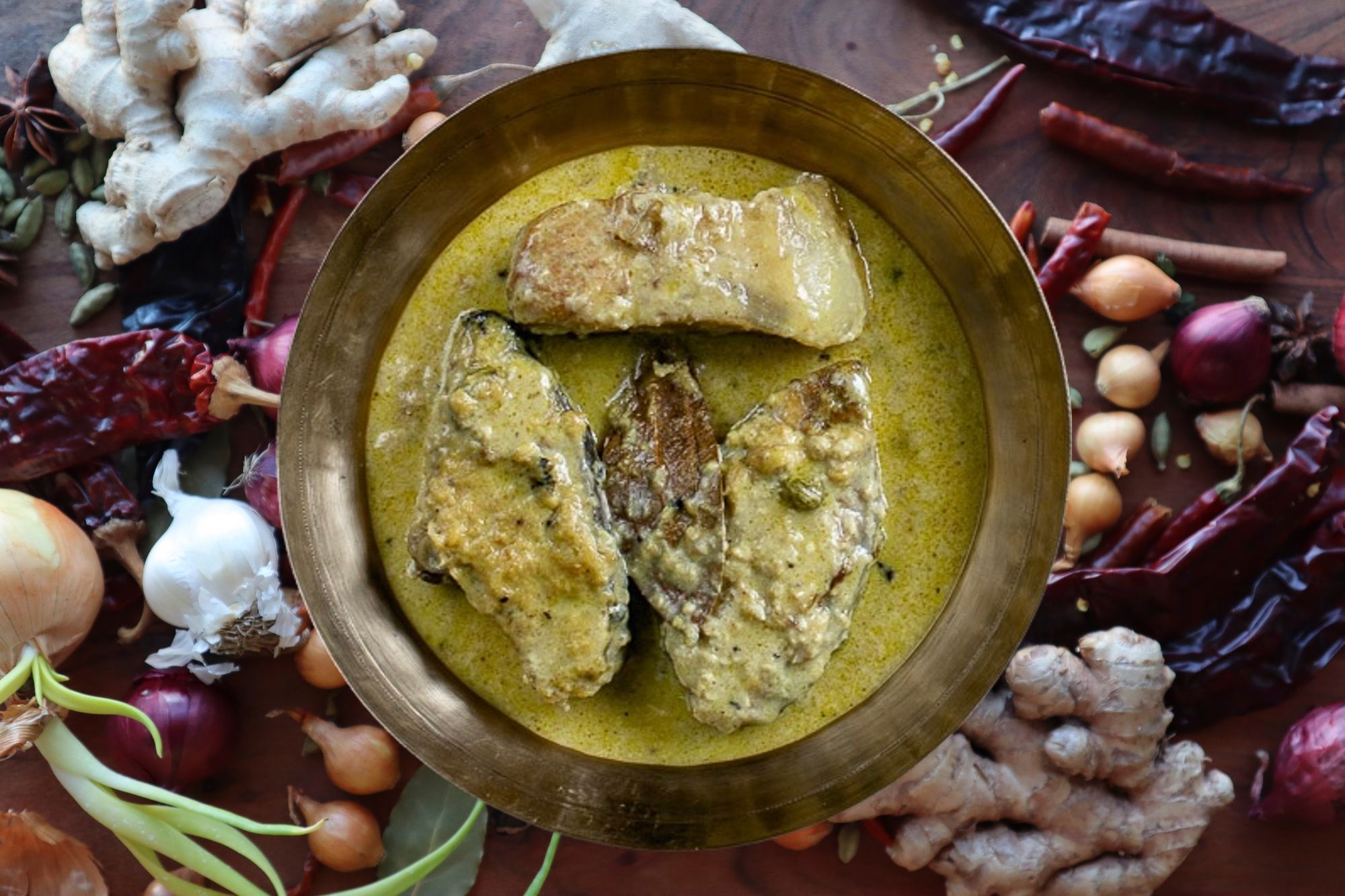 Thakurbarir Doodh Katla. Gorgeous steaks of Katla. Stewed in languorously reduced milk. The earthy warmth of ginger. The fragrance of crushed whole spices. This is indeed divine !!!